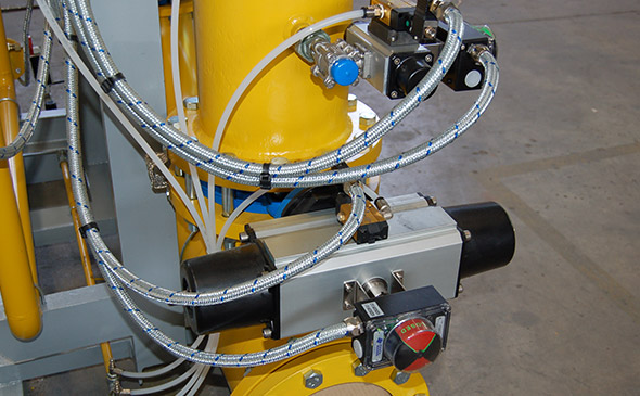 空分設(shè)備是煤化工行業(yè)、石化行業(yè)在生產(chǎn)制造過程中使用的重要儀器設(shè)備,其運作機械原理是實現(xiàn)對空氣的降溫冷卻,同時以增壓方式讓空氣的體積變小、轉(zhuǎn)化為液態(tài),根據(jù)空氣中各組成氣體之間的沸點差異,讓液化物與氣體充分接觸并發(fā)生反應(yīng),在熱質(zhì)交換原理的作用下,實現(xiàn)高純度氣體的分離。得銳自動化公司閥門在空分設(shè)備上的應(yīng)用主要分為兩大塊,大型空分設(shè)備上采用OMAL歐瑪爾的高頻、快速特性的氣動執(zhí)行器,在小型空分設(shè)備上使用的是OMAL歐瑪爾氣動梭閥和角座閥。